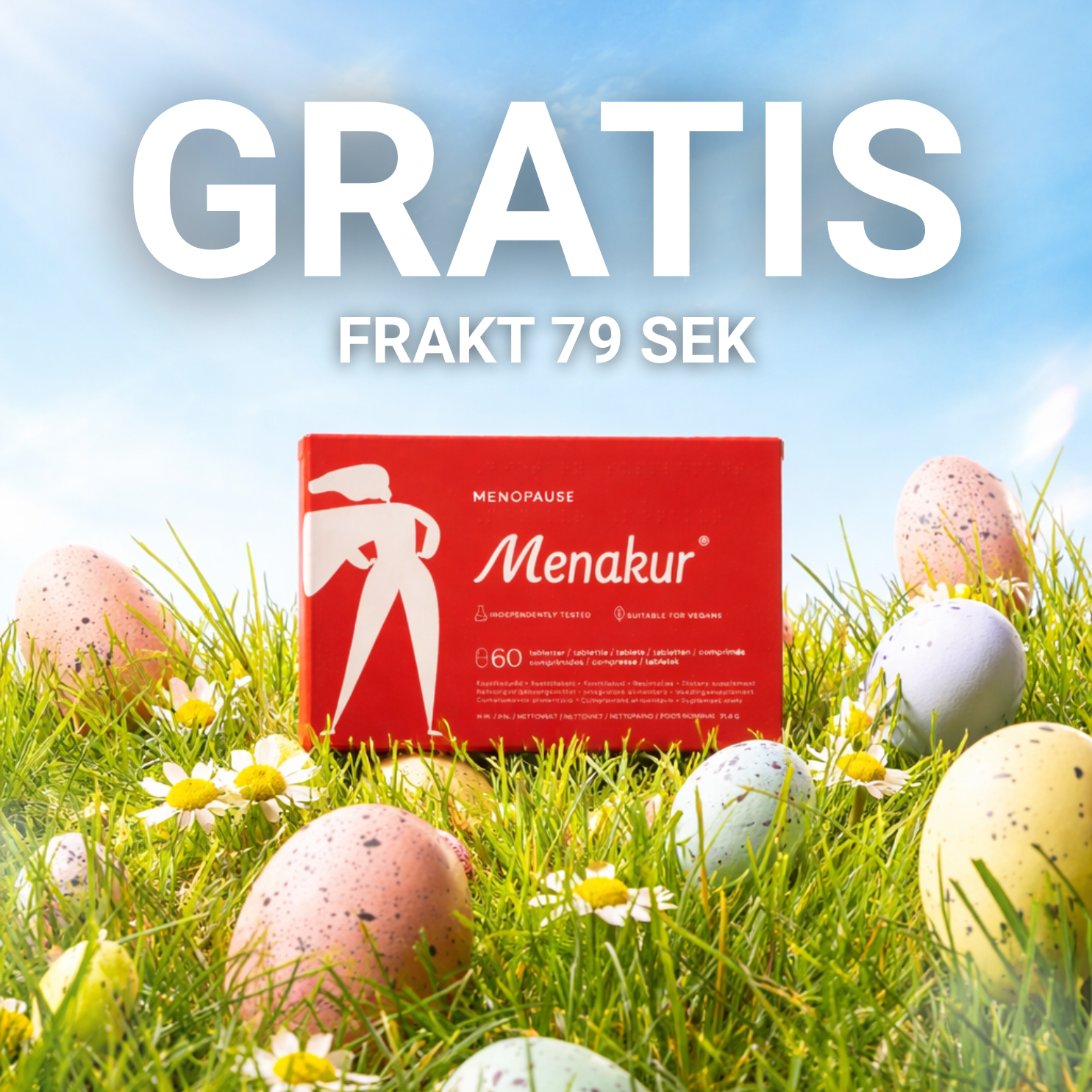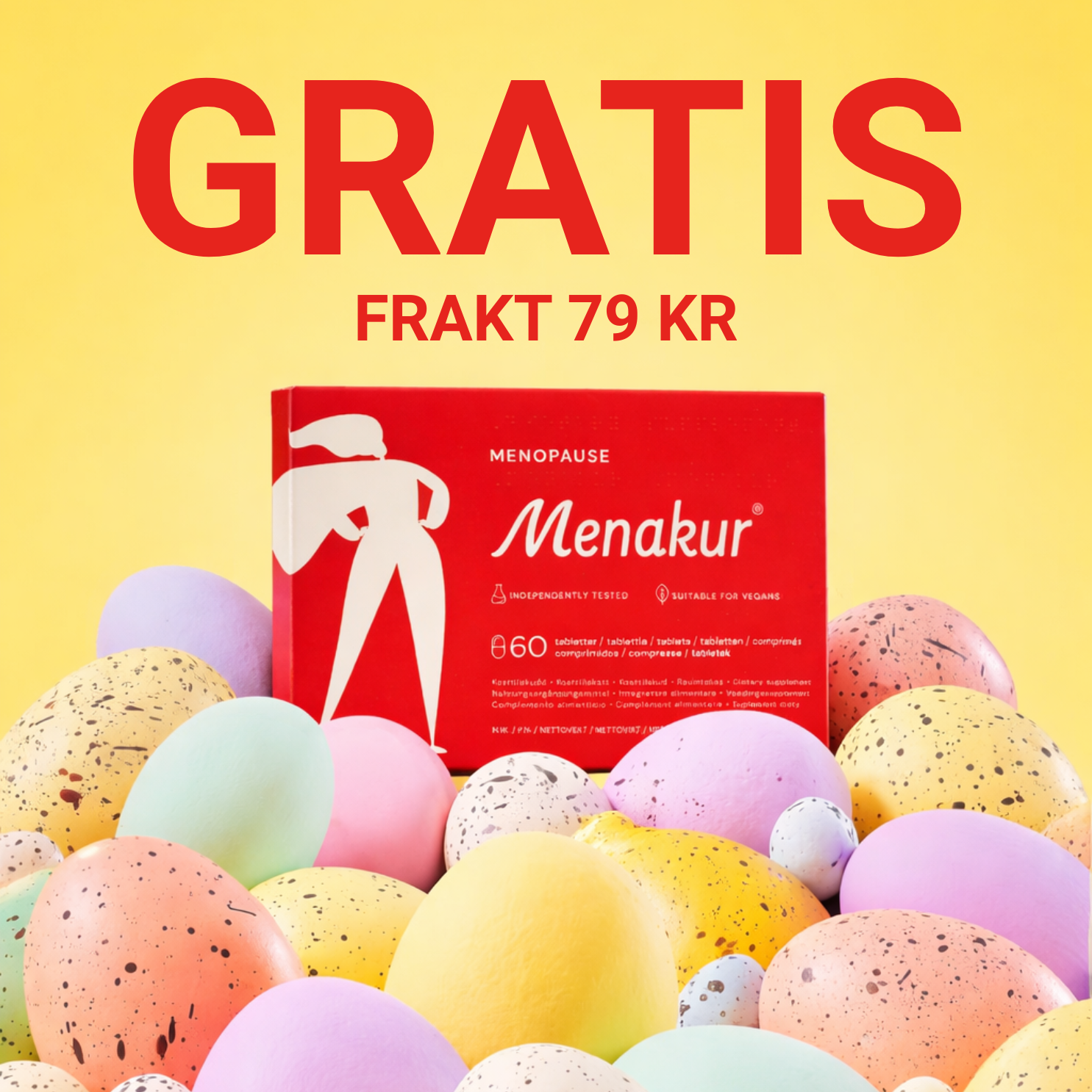 Menakur har en unik sammansättning av ingredienser som hjälper till att minska några av de normala symtomen vid klimakteriet, såsom trötthet, torra slemhinnor, muskel- och ledvärk, värmevallningar och humörsvängningar. Nu får du Menakur GRATIS - du betalar endast 79 SEK i frakt!
